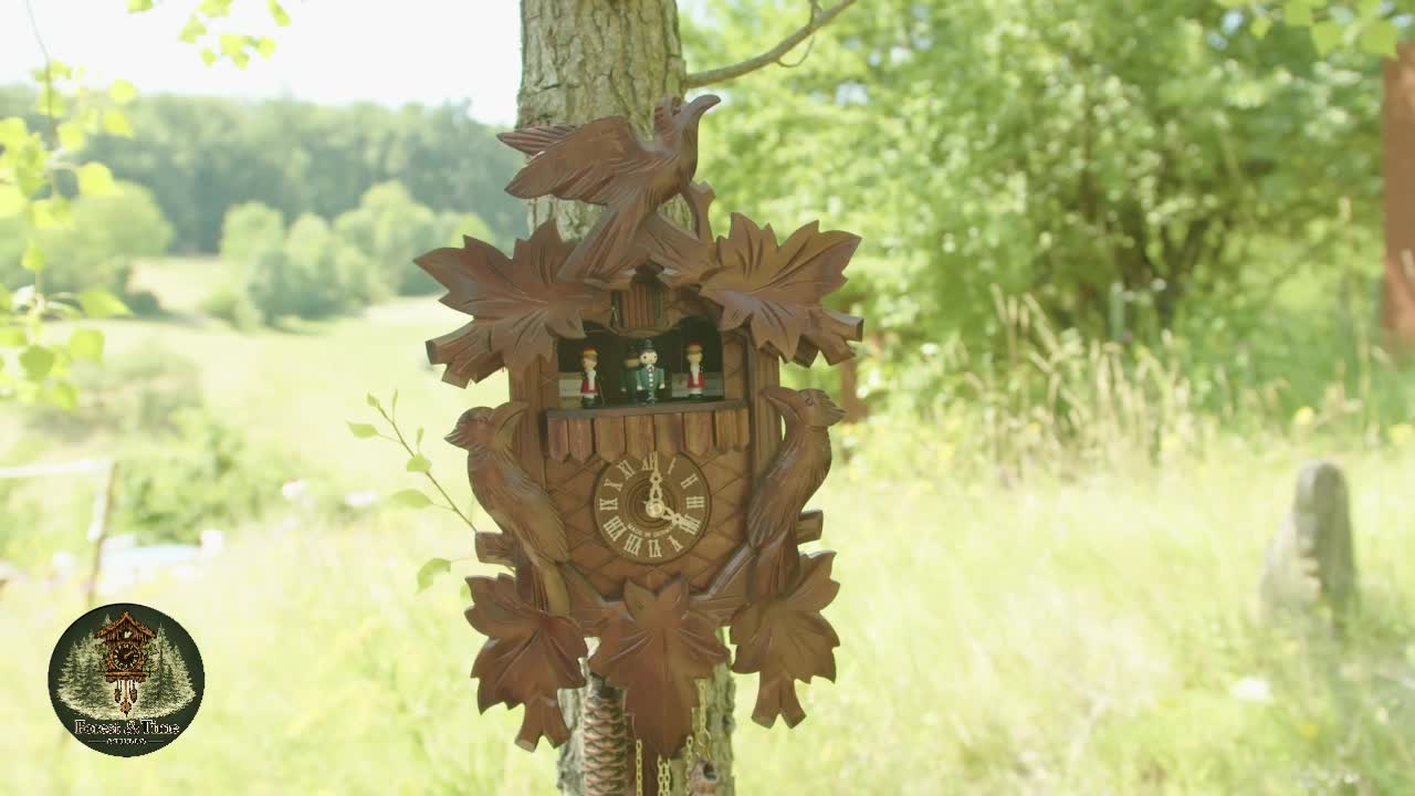 • Cuckoo Clock - Carving-Style - 1-Day Movement with Music and Dancers - Cuckoo Birds and Leaves